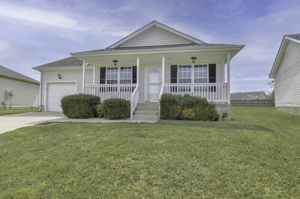 Lovely ranch on nice sized lot located close to Post, dining and Interstate 24. The covered front porch is perfect for sipping that morning coffee. The floor plan features an open space for socializing, where the kitchen, dining area and living room are not divided by walls. This space also has a vaulted ceiling, adding to its charm. The roomy primary bedroom features an oversized closet and a nice sized bath with a tub/ shower combination. The freshly painted deck is perfect for outdoor dining. The one car garage has a storage space off to the side and an automatic garage door opener. This perfect home is waiting for you so come take a look today!